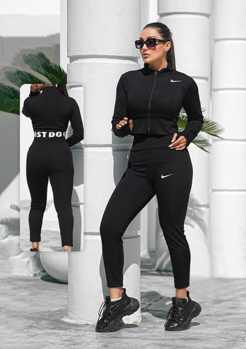 ست ورزشی زنانه نایک مدل کراپ سویشرتی تمام زیپ و لگ