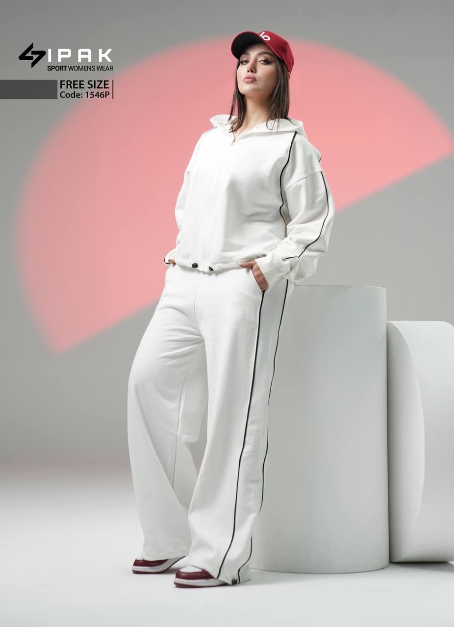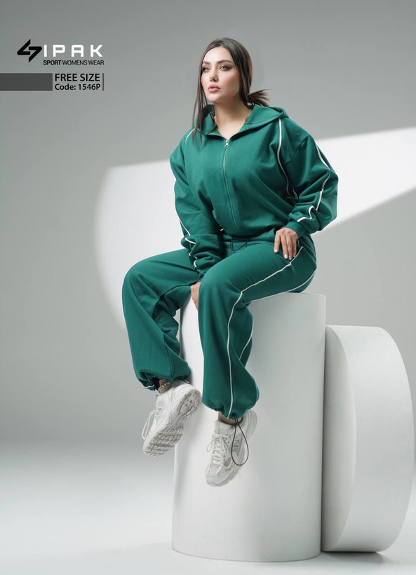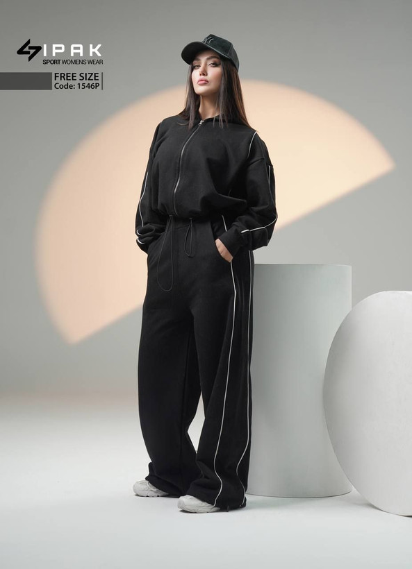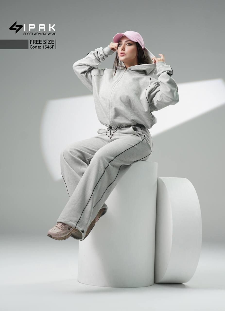 ست 1546P با طراحی مینیمال و جذاب، ترکیب هودی زیپدار آزاد و شلوار فیتدار با خطکشیهای ظریف، استایلی مدرن و همیشهدرجریان میسازه.