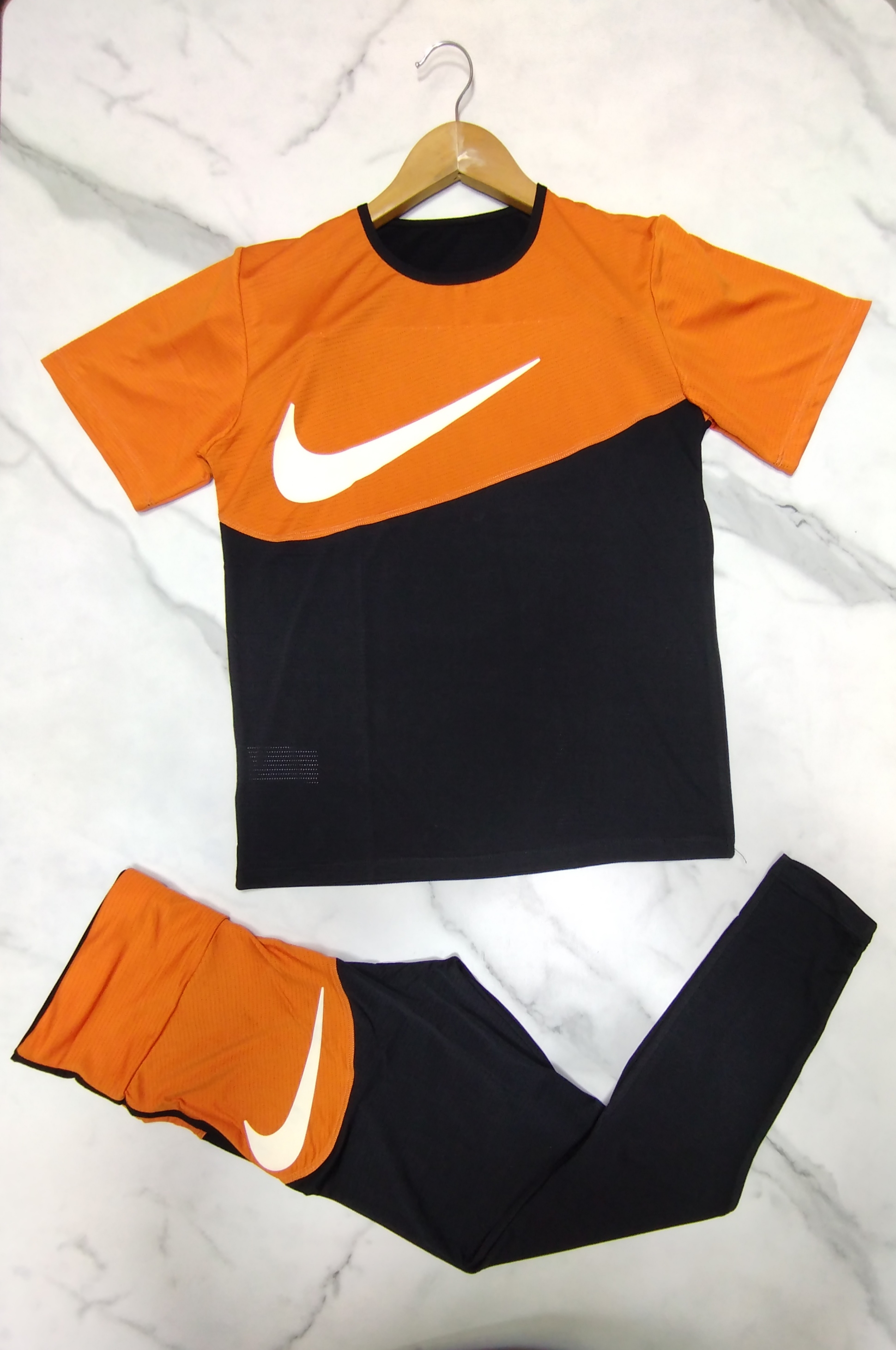 ست تیشرت و شلوار ورزشی نایک کیفیت بسیار عالی سبک و خنک دوخت بسیار تمیز سایز فری 38 تا 44 مناسب تا 80 کیلوگرم