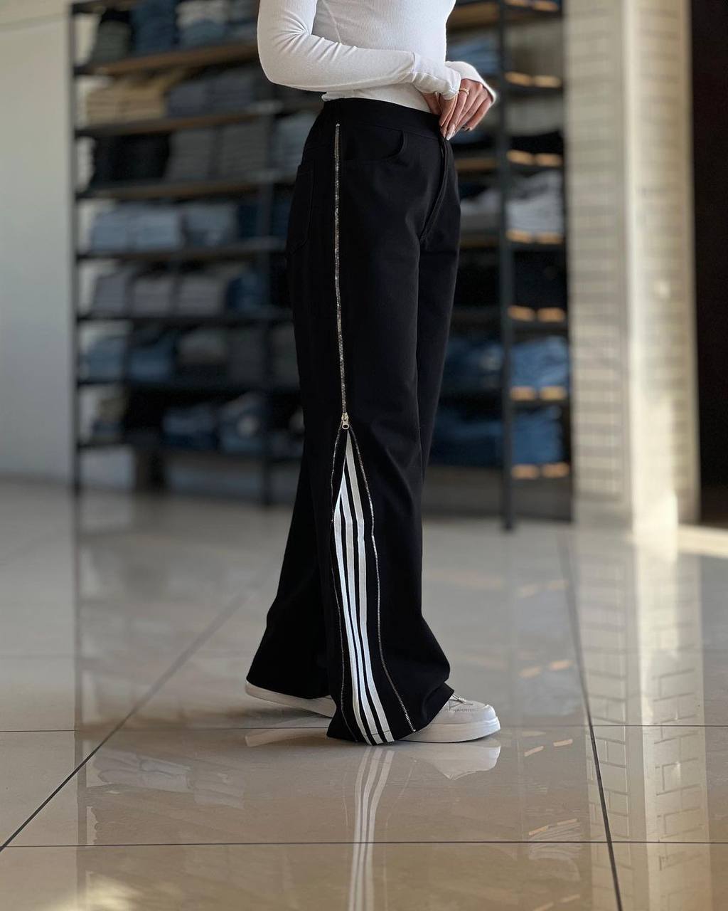 شلوار بگ زنانه مدل بغل نوار و زیپ